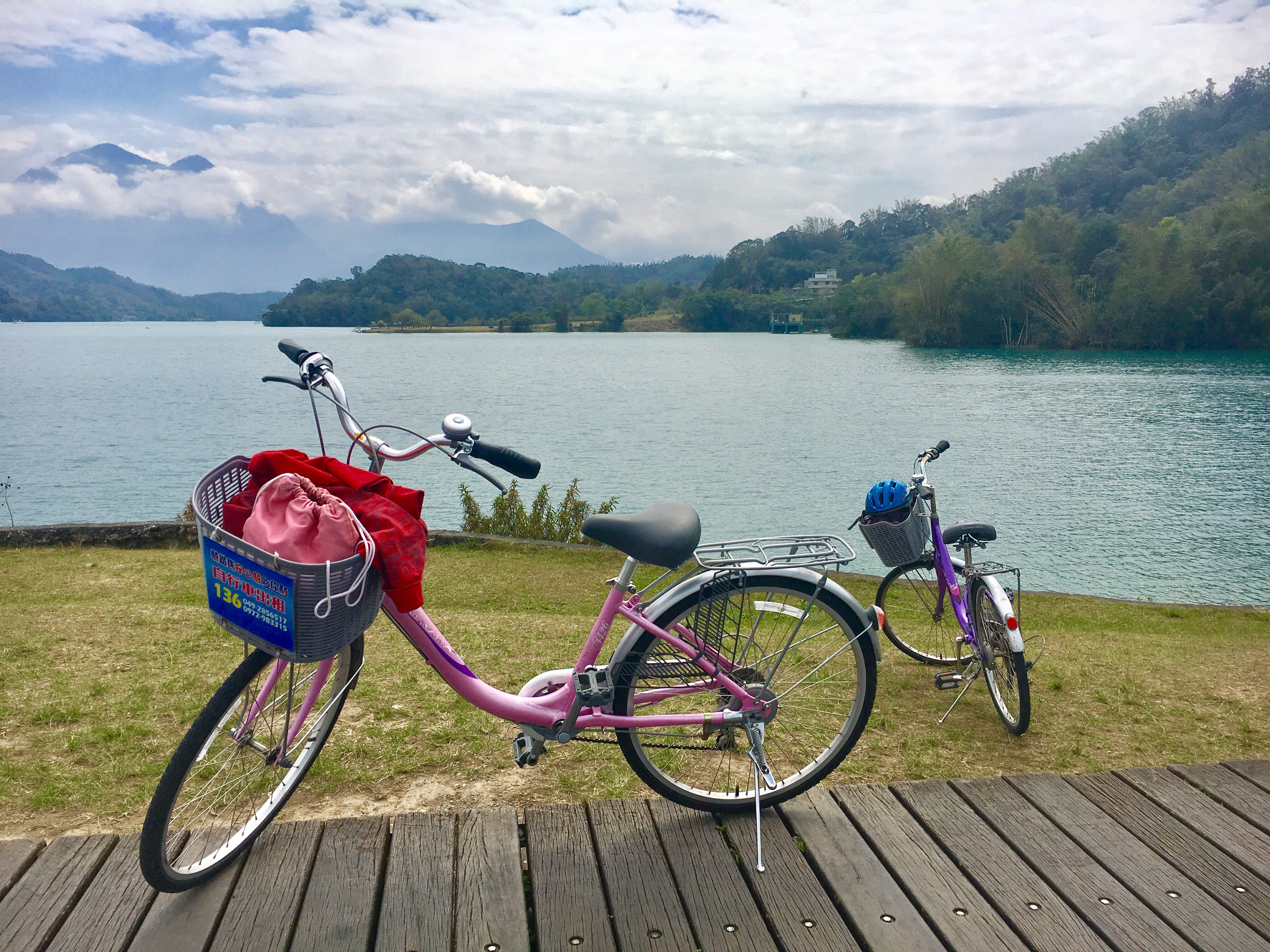 My next morning started quite well and I was especially happy to see the sun shining bright (perfect visibility for biking right?). But by the time I finished my breakfast, it had become supper foggy. I was quite dejected and almost thought that I won’t even get to see the lake today thanks to the fog. Anyways, I checked out and my hosts dropped me to the lake. And what do I see? It’s bright and  sunny again! Woohoo! I put my luggage in the locker- a free service provided at the visitor centre right in front of the bus stop. I then picked up a purple coloured bike from one of the rental shops in the same lane. Remember that you need to give your ID card as a deposit here for renting a bike.